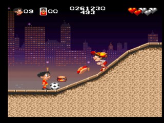 Хотя по названию можно предположить, что это спортивная игра, на самом деле это игра-платформер - цель состояла в том, чтобы провести маленького мальчика-футболиста через различные уровни, используя его футбольный мяч в качестве основного инструмента. Игрок мог выполнять забеги, броски, удары по мячу, удары головой и другие футбольные приемы, чтобы продвинуться по уровню или уничтожить врагов.
