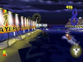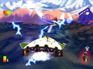 Dead in the Water - это 3d-игра, в которой игрокам предстоит сражаться на хорошо вооруженных лодках на полностью разрушаемых аренах. По своей структуре игра напоминает Twisted Metal или Vigilante 8. Игрок может выбрать одного из 8 персонажей, каждый из которых имеет свою уникальную лодку, а затем выходит на арену, чтобы сразиться с 6 другими участниками, пытаясь набрать очки, стреляя и уничтожая другие лодки.