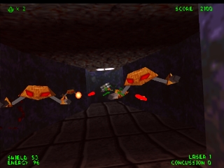 Управляя космическим кораблем, вам предстоит перемещаться по шахтным стволам, петлять по бесконечным туннелям и пробиваться мимо роботов в окружении, которое действительно можно представить в формате 360 3D. Дизайн уровней просто умопомрачительный, вы не сможете отличить верх от низа.