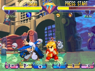 Добро пожаловать в мир Pocket Fighter, мир маленьких бойцов и большой силы. Выпущенный компанией Capcom, Pocket Fighter - это файтинг, в котором вы управляете персонажами из серий Street Fighter и Darkstalkers и сражаетесь до победного конца.