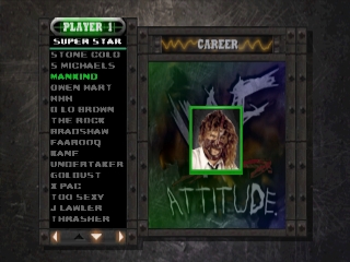 Сыграйте за или против более чем 40 звезд профессионального рестлинга в WWF Attitude на PlayStation. Вы сможете принять участие в выставочном матче, создать и развить собственного рестлера или начать карьеру. Стандартное управление включает в себя приемы, назначенные на определенные кнопки, а также контекстно-зависимые приемы, которые запускаются, когда рестлер лежит на ковре, бежит, находится в захвате или возле турникета.