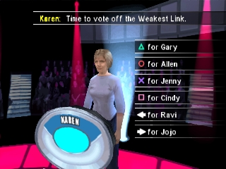 The Weakest Link - это интерактивная адаптация игрового шоу NBC, ставшего знаменитым благодаря холодной, бесцеремонной манере ведущей Энн Робинсон и ее коронной фразе: "Вы - самое слабое звено. До свидания!". Робинсон вносит свой вклад в игру с помощью видеоклипов и закадрового голоса, в то время как сам игровой процесс осуществляется с помощью полигональной графики.