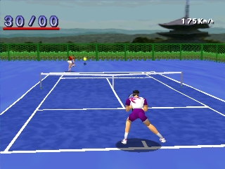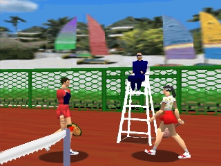 Кто хочет поиграть в теннис? В V-Tennis есть полигональные игроки с текстурным отображением и девять различных видов камеры, чтобы вы могли получить наилучшее представление о корте.