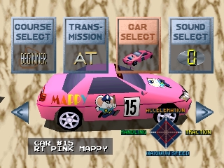 Обычно можно выбрать только 4 машины, но все 12 (кроме черной машины №13 "Дьявол") можно выбрать, если игрок сможет победить 100% врагов в загрузочной игре Galaxian перед титульным экраном.