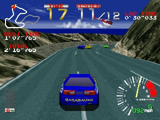 В Namco's Ridge Racer есть одна огромная трасса, разделенная на три отдельных заезда. Вы будете соревноваться с другими гонщиками, преодолевая повороты и совершая почти невозможные силовые скольжения. Выбирайте один из 13 автомобилей, каждый из которых имеет свои преимущества и недостатки в управлении, поворотах, максимальной скорости и многом другом. Гоняйте задом наперед, днем и ночью - и даже сразитесь со страшным Diablo, автомобилем, чье имя почти так же легендарно, как и вызов, который он бросает.