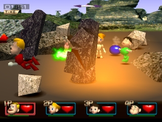 В семи различных 3D-средах, усеянных метательными предметами, вам предстоит сразиться с тремя противниками, вооруженными бревнами, камнями, ледяными глыбами и атомными бомбами. Если у вас закончились предметы для метания, вы можете швырять их в противников. Каждое попадание уменьшает счетчик жизни, поэтому будьте осторожны в выборе противника.