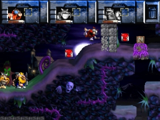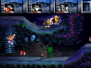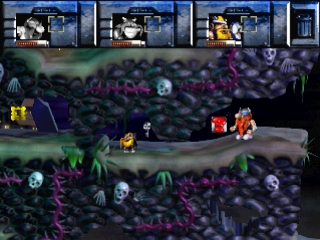В этой платформенной игре игрок попеременно управляет каждым из викингов. Здесь есть предметы, которые нужно собирать, пропасти, которые нужно перепрыгивать, монстры, с которыми нужно сражаться, и лифты, по которым нужно перемещаться.
