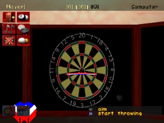 Активировать иконку/выбрать дротик/начать действие по метанию/отпустить дротик/просмотреть крупным планом доску для дартса: Кнопка X