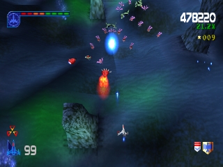 Новые возможности оружия в этой модернизированной версии игры включают в себя щиты, вращающиеся маневры, способности тяги (позволяющие вашему кораблю двигаться вперед) и многое другое. Вы получаете эти улучшения, направляя свой корабль в медальки, которые плавают вокруг на каждом уровне. Вы также можете пристыковать корабль к орудийным башням, чтобы добавить в свой арсенал внешние пушки.