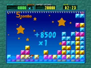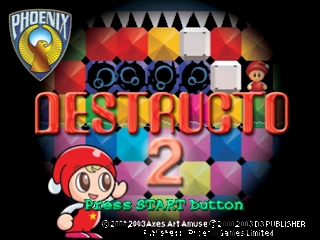 Destructo 2 - простая головоломка с подбором цвета, похожая на Mr. Driller, изначально выпущенная в рамках бюджетной серии в Японии. Основная задача - провести мультяшного героя через растущую кучу разноцветных плиток, сталкивая доступные блоки, чтобы создать кластеры одного цвета. Группы из четырех и более плиток одинакового цвета можно удалить, ударив по одному из соединенных блоков, а освободившееся место займут падающие сверху стопки. Падающие плитки, которые в итоге перестраиваются в новые цветовые кластеры, автоматически уничтожаются и дают очки за комбо.