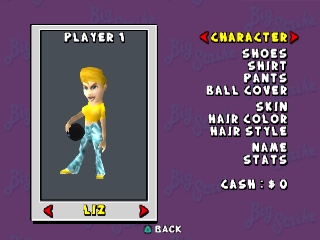 На деньги, полученные за победу в турнире, игроки покупают аксессуары и предметы для боулинга, такие как обувь, рубашки, штаны и чехлы для шаров, а также открывают других боулеров и секреты. Статистические данные игрока, в том числе средний, высокий уровень игры, заработок (в прогрессивных и турнирных играх), процент страйков и промахов за игру, количество побед и поражений, можно сохранять. Несмотря на то, что персонажи утрированы, а обстановка несколько неправдоподобна, действия в Big Strike Bowling представляют собой правдоподобные испытания, начиная от ловкой конкуренции и заканчивая позором срыва на линии.