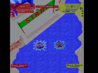 Если вы хотите охладиться после разрушения всех этих зданий, уменьшитесь до нормального размера, примите человеческий облик, возьмите внутренний тюбинг и приготовьтесь к небольшому тубингу. Вы будете плыть по рекам в таких экзотических местах, как Арктика и каналы Марса. Вы даже перенесетесь в эпоху динозавров! Ваша задача в каждой гонке (против компьютера или другого игрока) - маневрировать, прокладывая путь через флажки на трассе, избегая при этом врагов или бросая в них банки. Если вы слишком замедлитесь, вас схватит аллигатор!