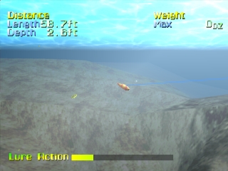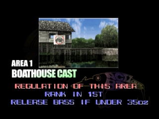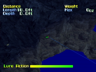 Хотя в игре, конечно, нет всех тех функций и возможностей, которые есть во многих других рыболовных играх для PlayStation, в Action Bass вы проводите больше времени за забросом и сражением с рыбой. Здесь нет лодок, на которых можно путешествовать по озеру, да и самих озер тоже нет. Вместо этого вы рыбачите в пяти различных зонах, открывая дополнительные приманки по мере продвижения. Чтобы завершить зону, нужно поймать определенное количество крупных рыб до истечения времени. Для этого нужно знать, какую приманку использовать, находить места, где обитает крупная рыба, и не тратить время на мелкую. Крупную рыбу можно держать в виртуальном аквариуме как напоминание о былой рыбацкой славе.