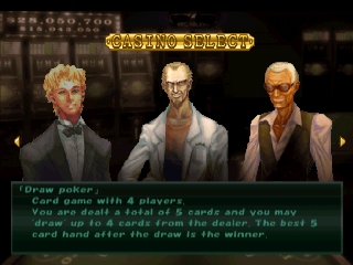В режиме казино вам дается небольшое количество фишек и цель - выиграть достаточно денег для покупки товаров в магазине. Среди товаров - новая фоновая музыка, доступ к столам с более высокими ставками и, самое главное, мебель для вашей комнаты. Когда игра начинается, ваша комната пуста, но по мере того, как вы зарабатываете деньги, вы можете покупать различные товары, такие как обои, ковры и телевизоры. Ваш выигрыш и все купленные товары сохраняются на карте памяти в конце каждой сессии.