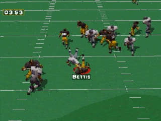 Лицензия NFL включает в себя тридцать смоделированных стадионов с аутентичными логотипами команд и более 500 игр, разработанных реальными игроками, такими как Стив Боно и Тим Браун. Новая функция под названием Total Control Passing позволяет реалистично обводить или занижать мячи, а такие приемы, как ныряние сверху, ловля одной рукой, дрожание предплечьями, плавание, вращение или прыжки с препятствиями, также находятся под вашим контролем. Хотя рейтинги игроков основаны на сезоне НФЛ 1995 года, их индивидуальная статистика может быть сохранена в течение всего сезона 1996-97 годов. У вас есть друзья? При наличии периферийного устройства Multi Tap в игре могут участвовать до восьми игроков.