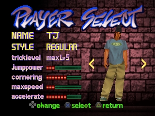 Каждый скейтер также отличается по стилю (Goofy или Regular) и имеет индивидуальные рейтинги по силе прыжка, прохождению поворотов, максимальной скорости и ускорению. Играя в Street Tour с разными персонажами, вы сможете открыть дополнительные маршруты, разблокировать бонусных скейтеров и открыть новые деки (рисунки на основной платформе доски). Вы даже сможете повысить общий рейтинг своего персонажа!
