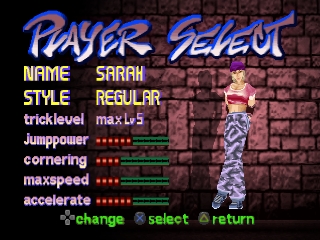 Кроме того, в режиме Versus скейтеры могут сыграть с другом, чтобы узнать, кто сможет выполнить больше трюков. В Street Sk8ter представлено 200 различных движений и комбинаций, которые можно выполнять во время гонок, и каждое из них приносит очки в зависимости от уровня сложности. Разумеется, если вы сорветесь, очки будут вычтены из вашего счета. В игре есть еще три "традиционные" зоны, включая халф-пайп, биг-эйр и боул.