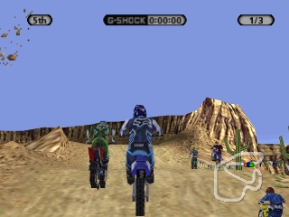 В игре Cool Boarders 3, созданной волшебниками, вы сможете использовать всех лучших профессионалов велоспорта, включая Тортелли, Уорда и Дауда. Каждый гонщик оснащен настоящими мотоциклами и снаряжением с трассы SuperCross. Выбрав байкера и его снаряжение, вы можете отправиться на одну из 21 настоящих трасс для суперкросса и мотокросса или на одну из "местных" трасс. Каждая трасса изобилует трамплинами, ухабами, перекатами и острыми ощущениями. Почему бы вам не попытаться поймать большой воздух с одного из трамплинов? Толпа будет в восторге! Вам не обязательно просто прыгать с трамплина, ведь в игре есть 15 различных трюков, которые можно выполнять, например "нак-нак" или щелчок каблуком.