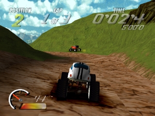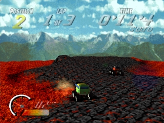 Monster Trucks предлагает девять прочных внедорожников, на которых можно гонять по неровной, внушительной местности. Это не единственная игра, извращающая жанр гонок, но, как и следовало ожидать от Psygnosis, качество презентации на голову и плечи выше остальных.