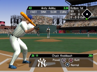Во время игры доступны две точки обзора: отбивание мяча с точки зрения кэтчера и игра на поле с видом над бриллиантом или аутфилдом. Оба варианта предлагают три угла обзора камеры, что позволяет дополнительно настроить перспективу. Также в игре есть "экшн" камера, которая показывает сцены в телевизионном стиле, когда мяч находится в игре. Возможности управления командой включают в себя сделки, замены, пользовательские игроки, свободные агенты, настраиваемые ротации или составы, а также несколько защитных формаций. В версии для PlayStation добавлена опция фэнтези-драфта, недоступная в игре для Nintendo 64.