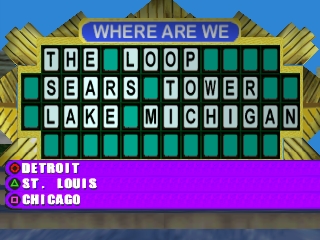 В "Колесе фортуны" также есть графика высокого разрешения, виброотдача при вращении колеса и оцифрованные изображения различных призов (например, дельтапланов или весельных лодок), если вам посчастливилось попасть на космическое поле. Другие возможности включают выбор места установки, количество отображаемых видеороликов (нормальное или минимальное), скорость таймера (нормальная, быстрая или медленная) и уровень громкости звука и видео.