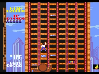 Если альпинисту удается подняться на вершину небоскреба и ухватиться за руль ожидающего его вертолета, он получает бонус и переносится на другой небоскреб, который таит в себе больше опасностей, чем предыдущий. Вертолет будет ждать около 30 секунд, а затем улетит.