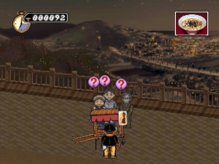 Или что-то в этом роде. В основном вы колесите по маленьким симпатичным локациям, которые меняются в зависимости от времени суток (часы продаж - с 15:00 до 12:00), дуя в свою чарумерную флейту, когда вам кажется, что вы нашли хорошее место, ориентируясь на соседей и прохожих. Собирается большая или маленькая толпа, и вы можете видеть, что они думают о вашем блюде, в маленьких иконках над их головами. У вас может быть дюжина или около того рецептов одновременно, и вы обнаружите, что, хотя новый рецепт может быть хитом поначалу, вскоре людям он надоест, и они начнут жаловаться, а бизнес пострадает.