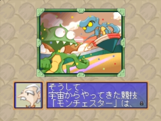 Сюжет игры рассказывает о странном камне, падающем с неба, который обладает таинственной силой и позволяет ученым создавать монстров. Люди соревнуются в чемпионатах, используя этих монстров, которых можно модернизировать, покупая различные части дисков, на которых они сражаются и т.д. Чтобы стать мастером монстров, игроку придется победить противников 3 разных классов (C, B и A).