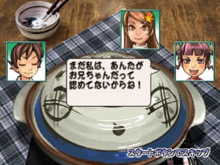 Экшн-игра для гурманов - Manpuku!!! Nabe Kazoku - еще одна кулинарная игра от Media Entertainment, как и Yakiniku Bugyou. Эта игра намного проще, чем даже та, поскольку вам не нужно беспокоиться о том, как разместить еду, перевернуть ее наполовину или определить, когда она готова: вы просто ждете, пока еда упадет в чашу для запекания, затем ждете, пока над ней появится надпись "OK", а затем нажимаете на нее, чтобы отправить в рот вашего персонажа. Кушать подано!