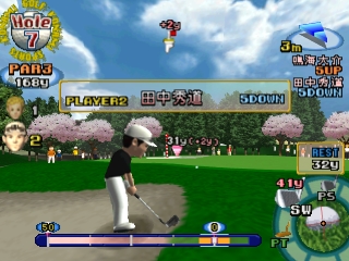 - Игрок в режиме "Турнир" начинает как игрок-любитель, который должен выиграть первый матч, чтобы попасть в профессиональный турнир. В игре представлены настоящие японские игроки и настоящие японские поля для гольфа.