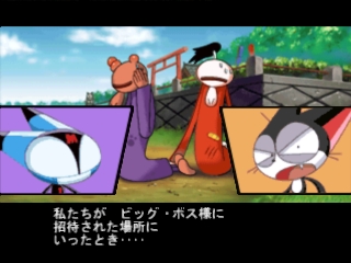 Kaettekita Cyborg Kuro Chan входит в серию бюджетных оригинальных игр для PSone от Konami стоимостью 3900 иен. В игре один или два игрока играют роль домашнего кота, футуристического кота или ронина-табби. Трио противостоит интересному сочетанию кошек-киборгов, японских духов, жирного маленького парня, который часто улыбается, и людей в кошачьих костюмах, и многих других. Кроме того, будьте готовы к битвам с боссами и многочисленным препятствиям на каждом этапе.