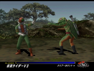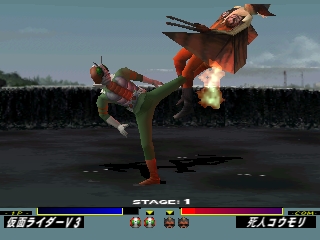 Ретро-телешоу в резиновых костюмах из японского пика 70-х получило развитие на PSX в игре-мечте для фанатиков импортных игр. Множество моментов с трансформацией и диалогами персонажей, когда пучеглазый Камен сражается с латексными ящерицами и резиновыми изгоями. Отличная вершина серии на Playstation с плавными комбо, делающими игру приятной.