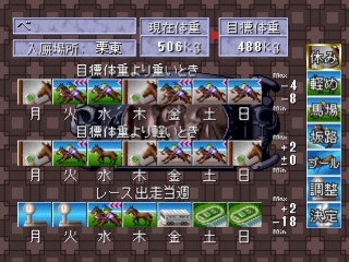 Существует 3 основных параметра выращивания лошади: скорость, выносливость и сила. Игроку предстоит контролировать все эволюции своих лошадей и проверять такие вещи, как их вес.