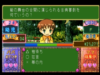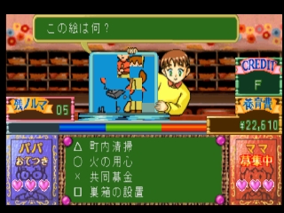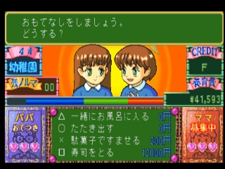 Игра представляет собой тривиальную игру с несколькими вариантами ответов, в которой вы оказываетесь в роли гордого молодого родителя, воспитывающего ребенка в Японии 1990-х годов. В зависимости от того, на какие вопросы вы правильно ответите, личность вашего ребенка будет меняться. Она может оказаться симпатичной девочкой, симпатичной девочкой с короткими волосами, симпатичной ботаничкой или симпатичной девочкой с озорной жилкой. Возможности безграничны.