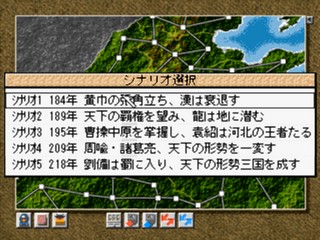 Kouryuu Sangoku Engi - стратегическая игра по мотивам "Романтики Троецарствия", игра также была выпущена на PC и Saturn. В игре игрок может управлять армией, снабжением, внутренними делами, вербовкой, дипломатией и т.д. В начале игры игрок может выбрать между 5 различными временными периодами (начиная с 184, 189, 195, 209 или 218 года)
