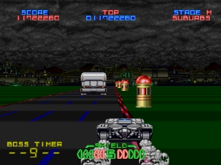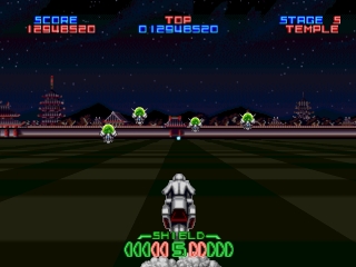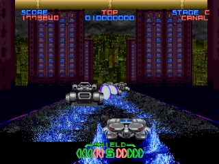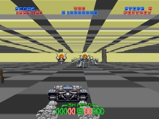 Трехмерная стрелялка с быстро движущейся графикой в масштабе спрайта. Игроки должны провести бронированную машину на воздушной подушке через несколько прокручивающихся уровней, уничтожая при этом волны врагов, чтобы спасти ученого, похищенного террористической организацией. В конце каждого уровня игроков ожидает большой страж, для уничтожения которого требуется несколько ударов.