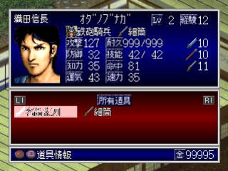 Oda Nobunaga Den - это стратегическая игра, созданная компанией Koei в 1998 году и основанная на жизни Оды Нобунаги. В игре игрок может использовать деньги для создания армии (обычные солдаты, лучники и т.д.) и создания нового оружия, а также улучшения оружия. Перед каждой битвой он может выбрать армию и спросить совета у своих солдат. Когда игрок будет готов, он сможет отправиться на битву.