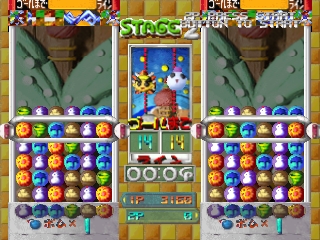 Символы можно сдвигать в сторону, чтобы составить комбо, но это позволяет не концентрироваться на верхней линии, как в Puyo Puyo и других играх. Также известна как Weather Tales.