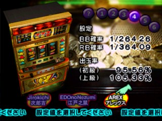Pachi-Slot Aruze Oukoku - это игра в пачи-слот, в которой представлены 3 разных игровых автомата (Jirokichi, Edo no Nezumi и Arex) и разные уровни увеличения.
