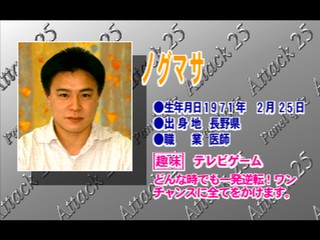 Панельная викторина "Атака 25" - игровое шоу, выходящее на японском телеканале Asahi Broadcasting Corporation. Впервые оно вышло в эфир 6 апреля 1975 года и в настоящее время является единственным игровым шоу на японском телевидении, в котором участвуют не знаменитости. До 2011 года ведущим был Киёси Кодама, затем - Ясуюки Уракава.