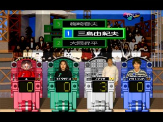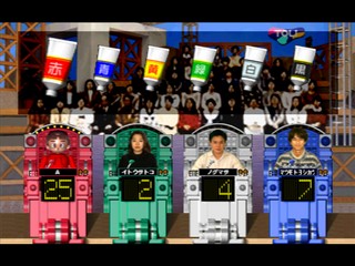 Первый вопрос - загадка, которая показывается на видеоэкране; игрок, который первым нажмет на кнопку и даст правильный ответ, получает центральную коробку № 13. После этого происходит представление участников. С этого момента игроки обозначаются своим цветом (в японском языке красный - "акай", зеленый - "мидори", белый - "сиро", синий - "ао").