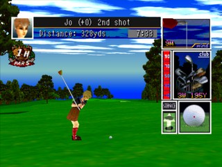 Игра включает в себя выбор клюшки, настройку стойки, установку мощности, точки удара и направления удара с учетом ветра. Все эти действия выполняются вручную, прежде чем гольфист выполнит удар. Японская женщина-кэдди будет время от времени комментировать вашу игру, предлагая такие фразы, как "хороший удар", "отличный пар!" или "хороший подход", когда ваша игра заслуживает похвалы.
