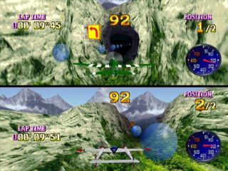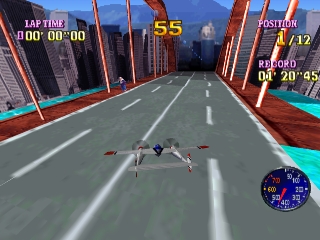 Bravo Air Race - это другой тип гоночной игры для PlayStation: вместо автомобилей вы будете гонять на самолетах! Всего на выбор предлагается десять самолетов (включая истребители времен Второй мировой войны и самолеты для трюков), отличающихся скоростью, ускорением и подвижностью. Среди самолетов есть "Молния", "Мустанг", "Тандерболт", "Корсар", истребитель "Зеро", "Синден", "Мессершмитт", "Спитфайр", "Гиби", "Питтс" и два скрытых самолета. Выбрав самолет, вы сможете свободно выбрать любую из четырех трасс для гонок: Каньон, Снежная страна, Южный город или Гора. Следите за стрелками или слушайте диктора, сигнализирующего о необходимости поворота, пикирования или набора высоты, когда вы будете проходить трассу.