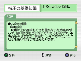 На этот раз игра позволяет пользователю ознакомиться с полной энциклопедией шиацу с большими описаниями, а также изображениями.