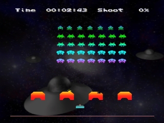Space Invaders - это двухмерный фиксированный шутер, в котором игрок управляет лазерной пушкой, перемещая ее по горизонтали в нижней части экрана и стреляя по спускающимся инопланетянам. Цель игры - победить пять рядов из одиннадцати инопланетян (в некоторых версиях их количество отличается), которые движутся по горизонтали вперед-назад по экрану по мере продвижения к нижней части экрана. Игрок побеждает пришельца и зарабатывает очки, стреляя в него из лазерной пушки. По мере победы над пришельцами движение пришельцев и музыкальное сопровождение игры ускоряются. Победа над пришельцами вызывает новую волну, более сложную, и этот цикл может продолжаться бесконечно.