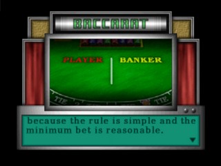 Vegas Casino (Super Casino Special в Японии) - это азартная игра с 2 основными режимами: Рейтинговый и бесплатный. В режиме рейтинга игрок может выбрать одного из 10 различных персонажей (мужского и женского пола) и поставить себе денежную цель, которую он должен достичь, чтобы выиграть игру. В свободном режиме игрок может играть в любую из азартных игр.