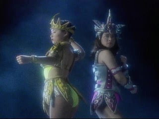 Всемогущий бог Зевс наблюдал за всем этим с высоты. В ответ он наделяет двух убитых горем принцесс силами Любви и Мужества, с которыми они отправляются побеждать злую ведьму Кармилу.