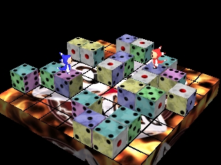 В 3D-головоломке Devil Dice от THQ игроки управляют херувимским дьяволом, который бегает по верхушкам выпавших костей. Игрокам предстоит перевернуть каждый кубик так, чтобы совпали номера соседних костей; например, если в ряду из четырех костей три имеют номер шесть, а одна - номер два, нужно перевернуть кубик с номером два так, чтобы он совпал с номером шесть. Таким образом, вы уничтожите весь ряд и станете на шаг ближе к завершению уровня.